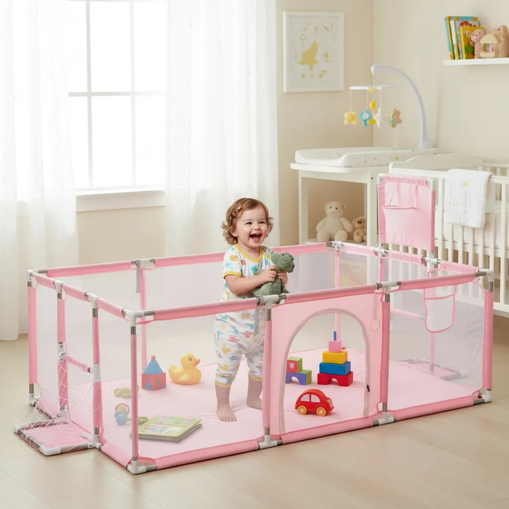 Corral Para Bebé Grande con Pelotas y Canasta – Parque Infantil Plegable Seguro