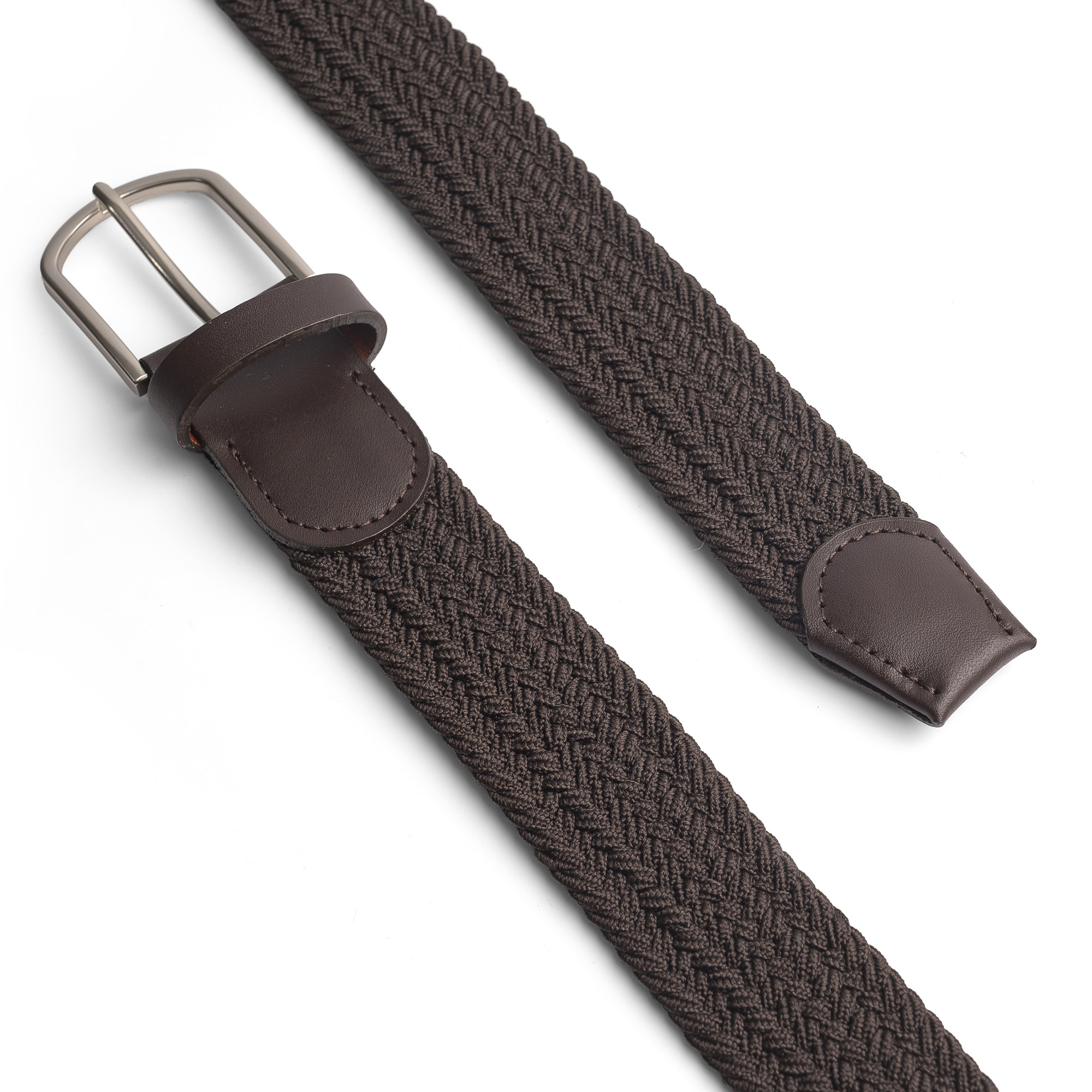 Este modelo en café profundo, con un tejido trenzado uniforme que se ve limpio y premium. Se complementa con terminaciones tipo cuero en color chocolate y hebilla metálica, logrando un cinturón clásico, elegante y extremadamente fácil de vender.
