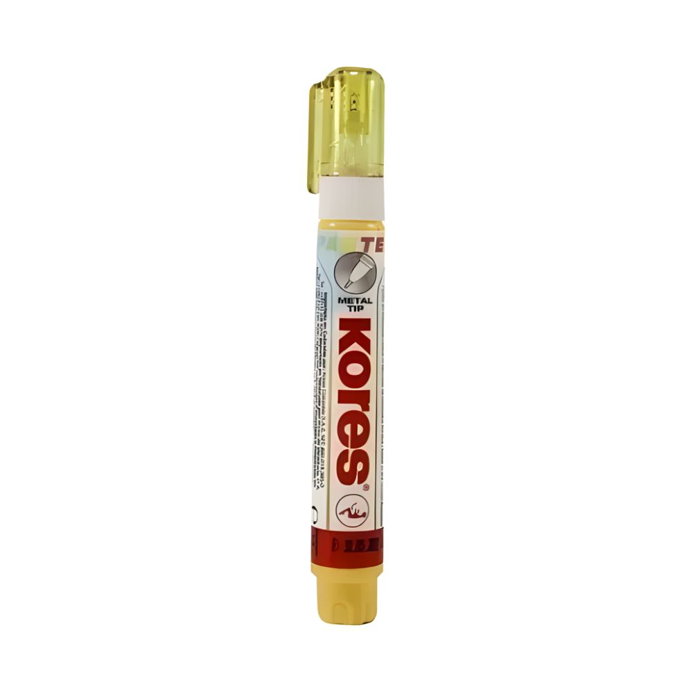 Las imagenes son referencias y pueden variar segun disponibilidad. Este corrector Kores tipo lapiz pastel de 10 gramos esta diseñado para cubrir errores de escritura con aplicacion precisa sobre cuadernos, hojas y documentos. Su formato facilita control en la salida del liquido, permitiendo realizar correcciones puntuales en lineas y detalles pequenos.