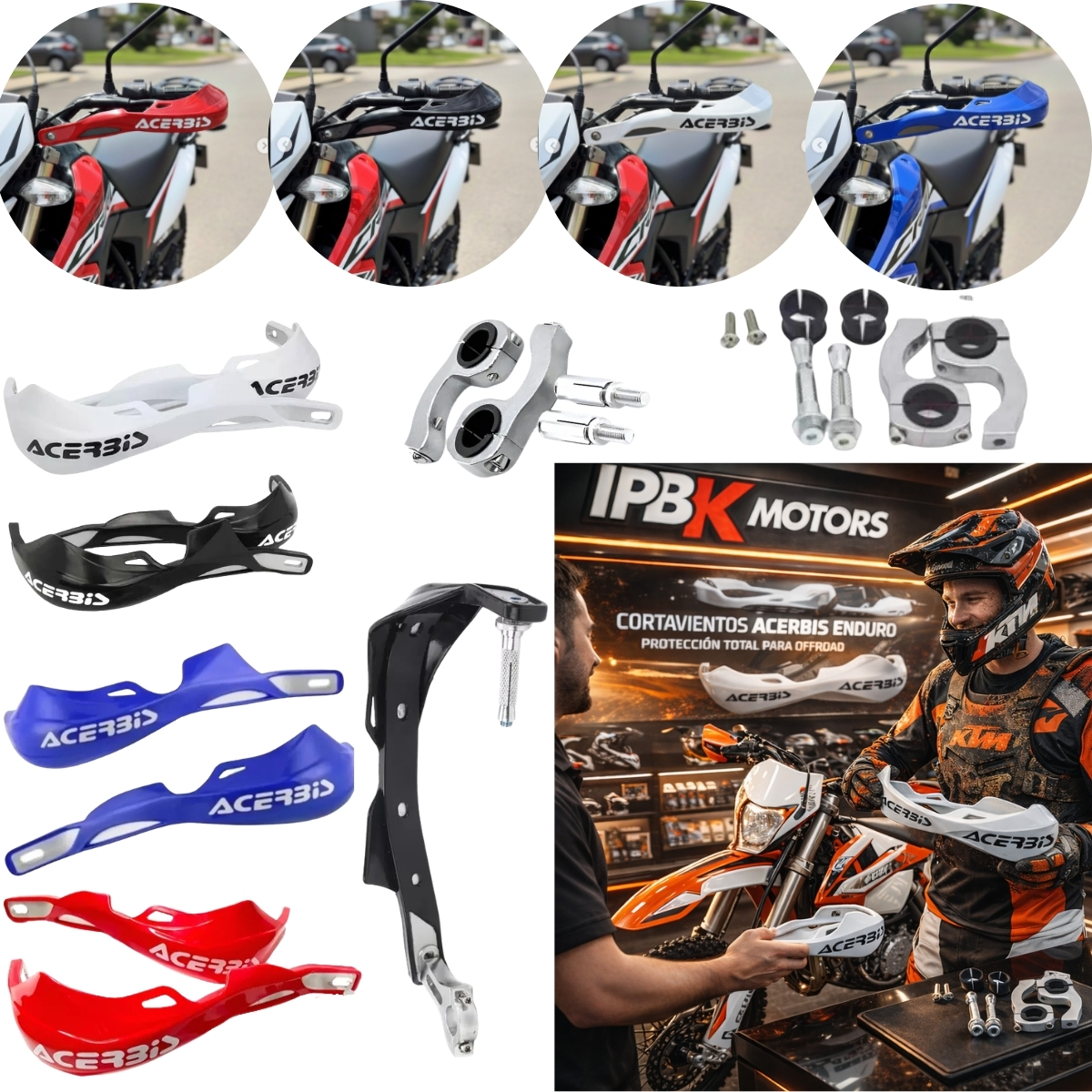 Protección total para tus manos y controles con los Cortavientos Hand Saver Acerbis con alma de acero universal para moto.