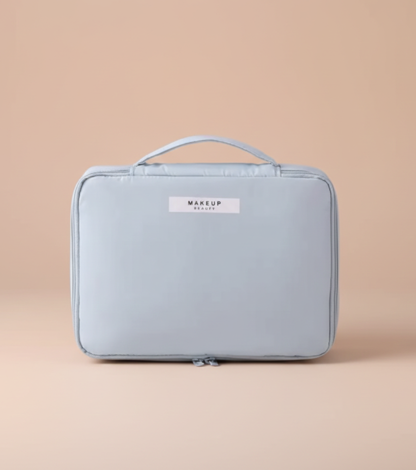 Lleva tu rutina de belleza a todas partes con un toque de elegancia y orden. Esta cosmetiquera de tela combina un diseño acolchado minimalista con la practicidad que necesitas para tus viajes o el día a día.
