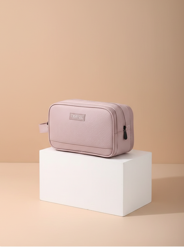 Este neceser de alto rendimiento destaca por su panel frontal desplegable con bolsillos elásticos diseñados específicamente para brochas y pinceles, manteniéndolos protegidos y a la mano. Fabricada en material textil de alta densidad con ventana interior transparente, permite visualizar el contenido del compartimento principal de forma inmediata. Es la opción ideal para profesionales del maquillaje o viajeros que requieren orden absoluto en un formato compacto y resistente.