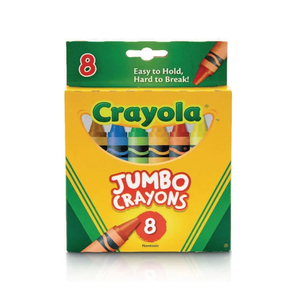 Las imagenes son referencias y pueden variar segun disponibilidad. Este set de crayones Crayola Jumbo de 8 unidades esta diseñado para actividades de colorear y dibujo en etapas escolares iniciales. Su formato grueso facilita el agarre y permite aplicar color con cobertura amplia sobre el papel, siendo adecuado para cuadernos, laminas y ejercicios graficos basicos.