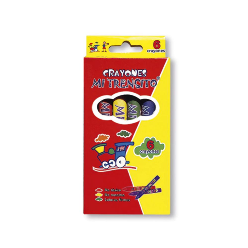 Las imagenes son referencias y pueden variar segun disponibilidad. Este set de crayones Mi Trensito Escolar de 6 unidades esta diseñado para actividades de colorear y dibujo en el entorno educativo. Su seleccion basica de colores permite trabajar en cuadernos, laminas y ejercicios graficos durante clases y tareas escolares.