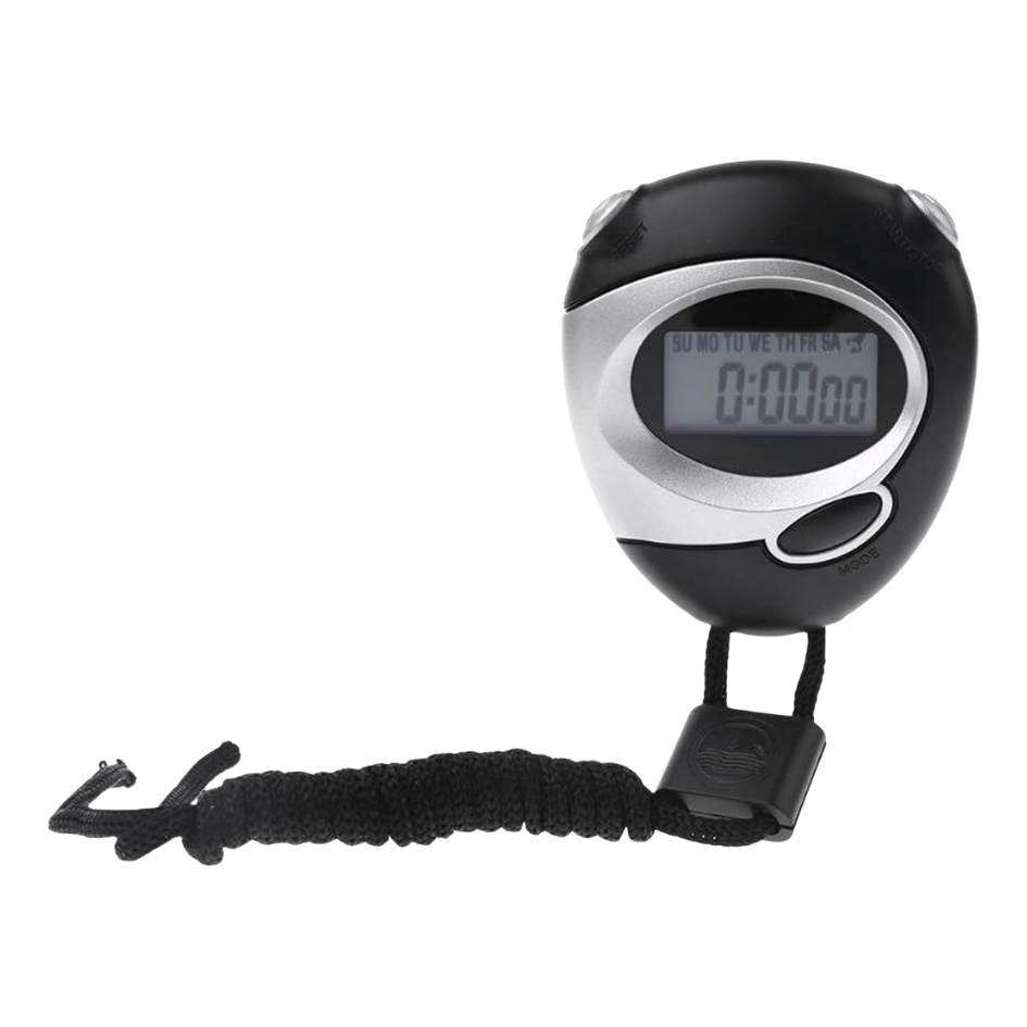 Cronómetro digital de uso deportivo diseñado para la medición precisa de intervalos de tiempo en actividades escolares, entrenamientos y competencias. Incorpora una pantalla de tamaño amplio que facilita la lectura clara de los datos, incluso durante actividades en movimiento.