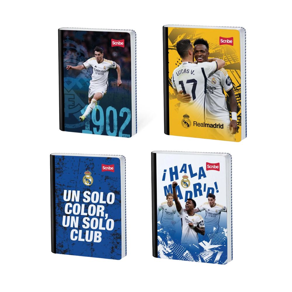 Las imagenes son referencias y pueden variar segun disponibilidad. Los cuadernos son surtidos por la tematica y llegaran segun referencia disponible. Este cuaderno cosido Scribe de 50 hojas cuadricula Real Madrid esta diseñado para uso escolar, ofreciendo estructura firme y organizacion adecuada para tareas, apuntes y ejercicios academicos.