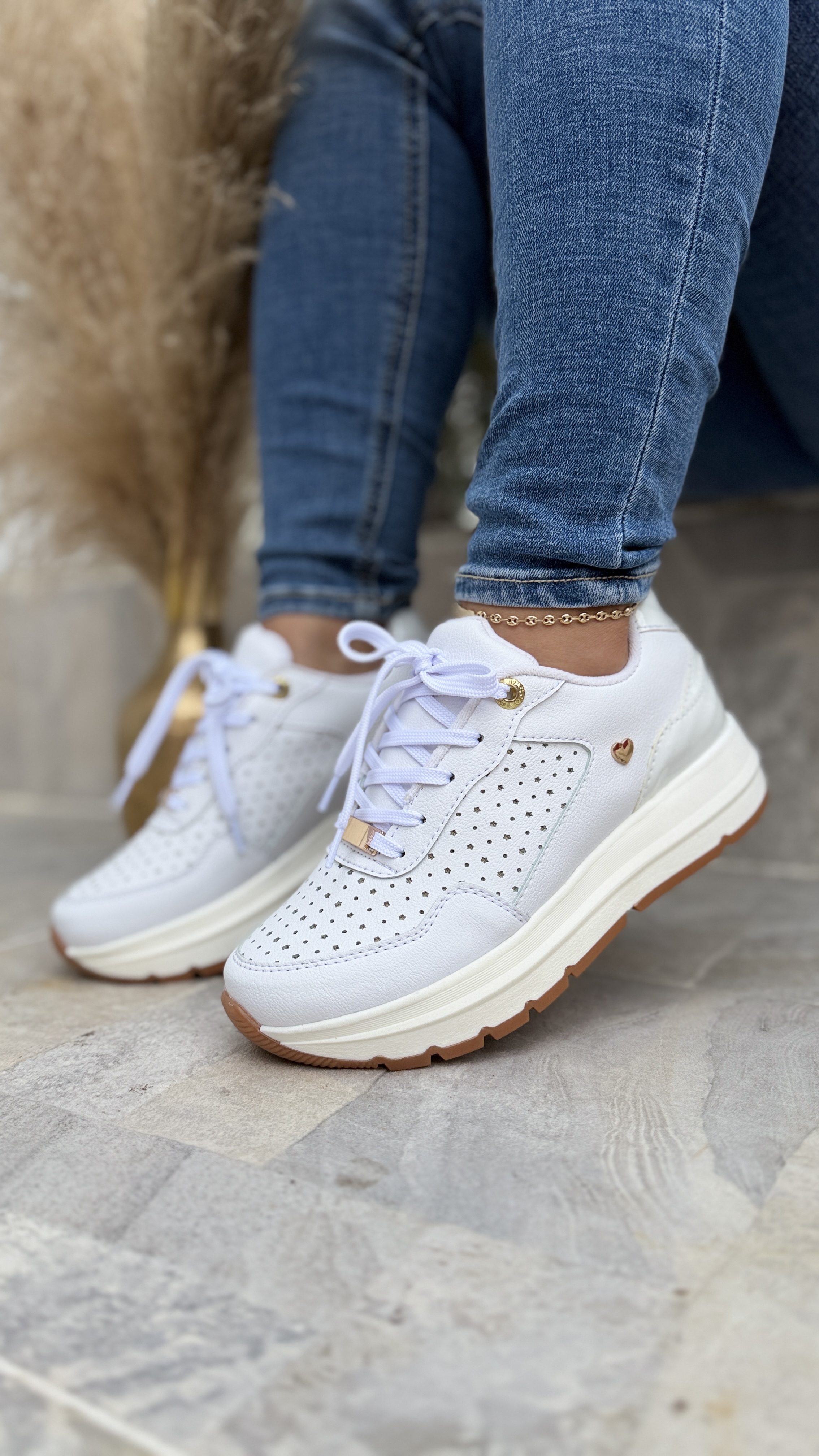 Hermoso deportivo para dama disponible en tres colores, negro, blanco y champang, desde la talla 34 hasta la 40, en material sintético, con adorno metálico inoxidable, cordón de algodón, suela en spanso, plantilla confort.