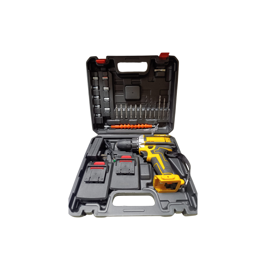 Taladro inalámbrico percutor de alto rendimiento, ideal para trabajos de bricolaje, mantenimiento y reparaciones en el hogar o uso semi-profesional. Incluye un completo set de brocas, puntas y accesorios que permiten perforar, atornillar y desatornillar con facilidad en distintos materiales. Su diseño ergonómico y potente motor garantizan precisión, comodidad y eficiencia en cada trabajo ⚙️✨