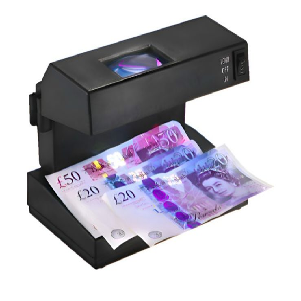 El diseño más nuevo del detector de dinero funcionará de forma segura evitando que la luz ultravioleta brille en sus ojos.
