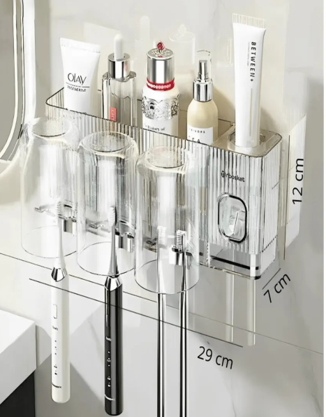 Este organizador es perfecto para cualquier hogar, ofreciendo un diseño que no solo ahorra espacio, sino que también protege los cepillos de la suciedad y las bacterias. Hecho de material acrílico, es fácil de limpiar y resistente al uso diario. Incluye tres tazas y compartimentos adicionales para otros accesorios de baño, lo que lo convierte en una solución completa para un baño más limpio y organizado.
