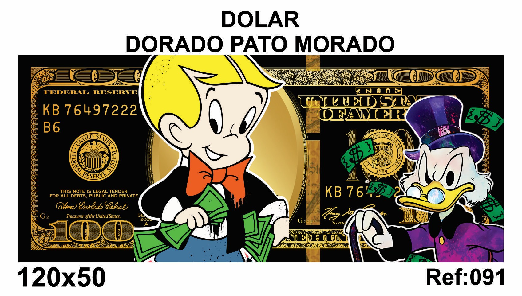 🖼️ DÓLAR DORADO PATO MORADO– 120x50 cm