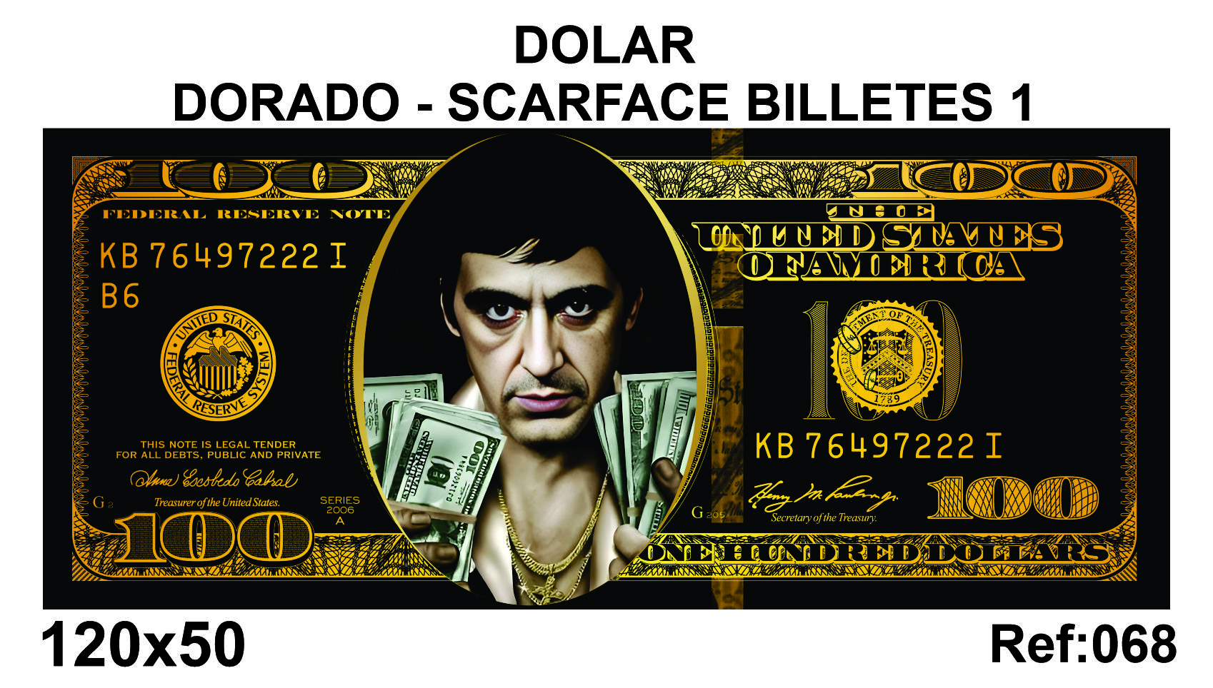 🖼️DÓLAR DORADO-SCARFACE BILLETES 1– 120x50 cm