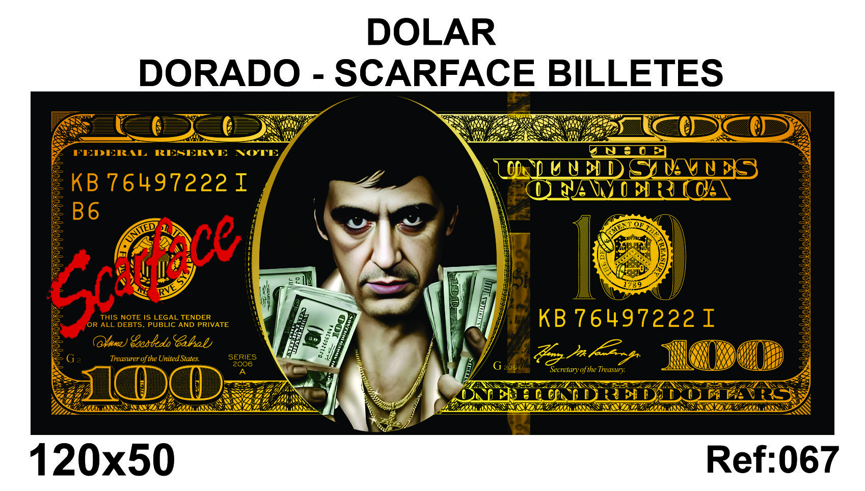 🖼️DÓLAR DORADO-SCARFACE BILLETES– 120x50 cm