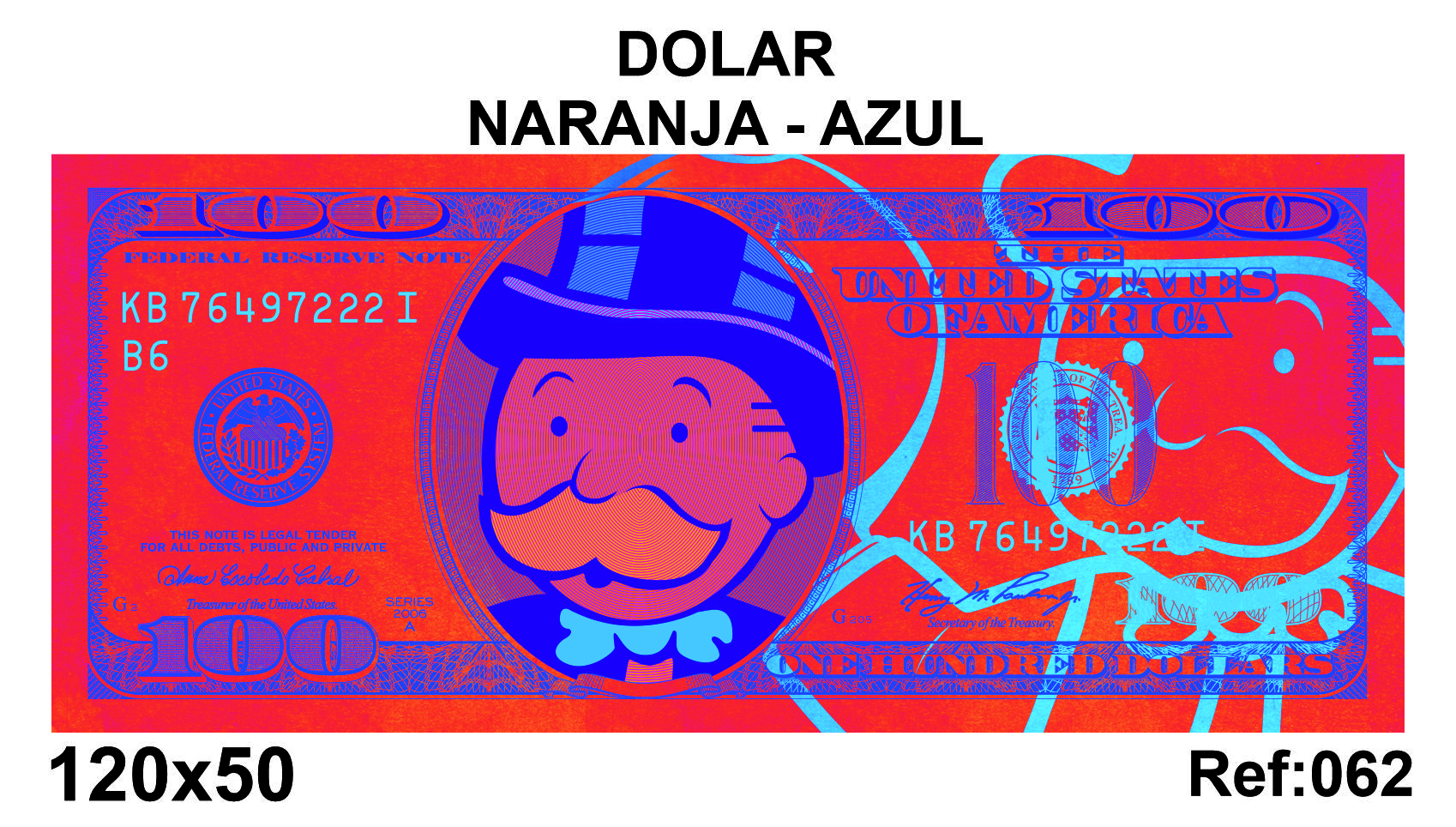 🖼️DÓLAR NARANJA-AZUL– 120x50 cm