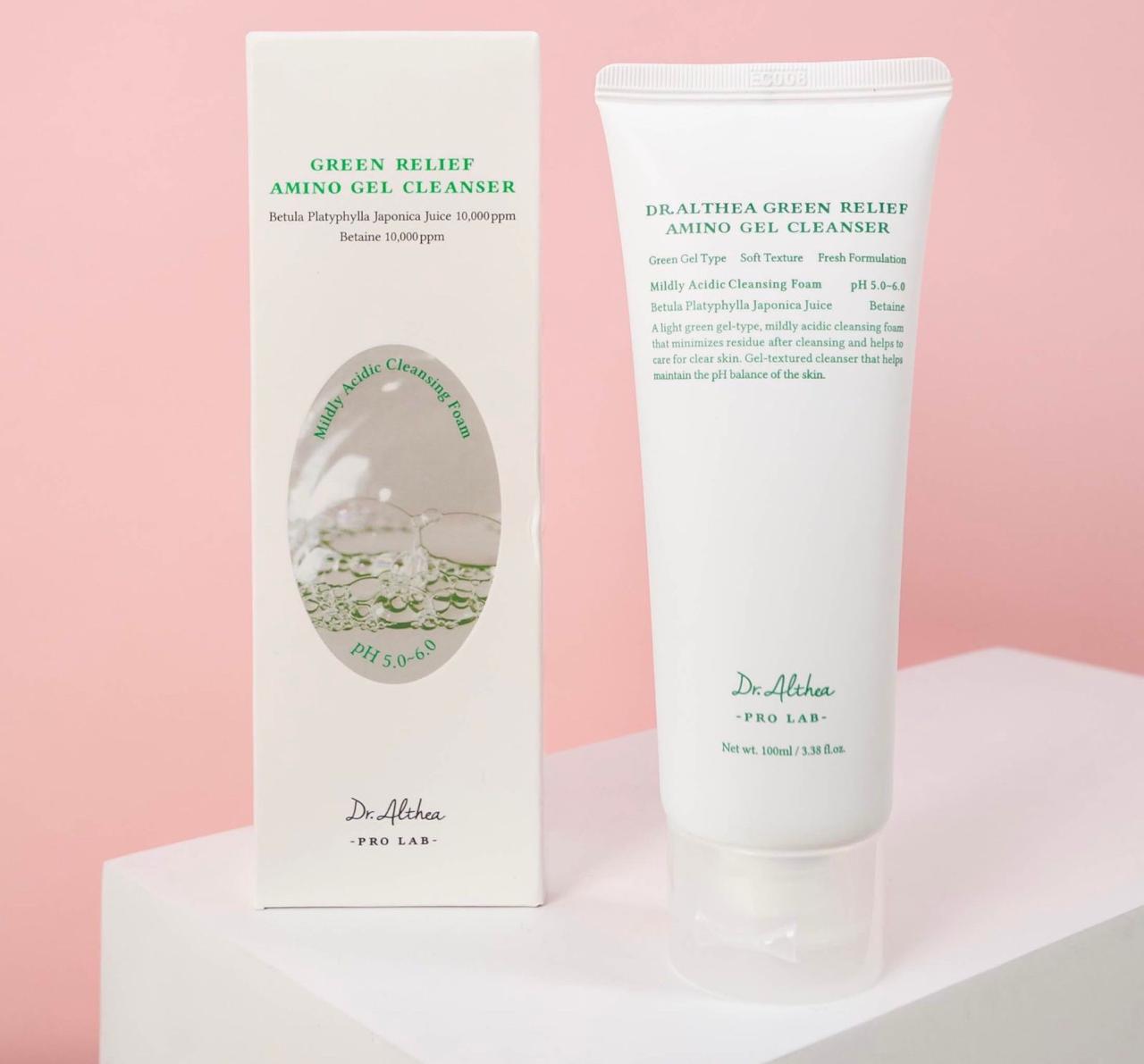 El Green Relief Amino Gel Cleanser de Dr. Althea es un limpiador facial en gel suave, ideal para piel sensible, mixta y deshidratada. Su fórmula de pH ligeramente ácido (5.0–6.0) ayuda a mantener el equilibrio natural de la piel mientras limpia eficazmente sin causar irritación.