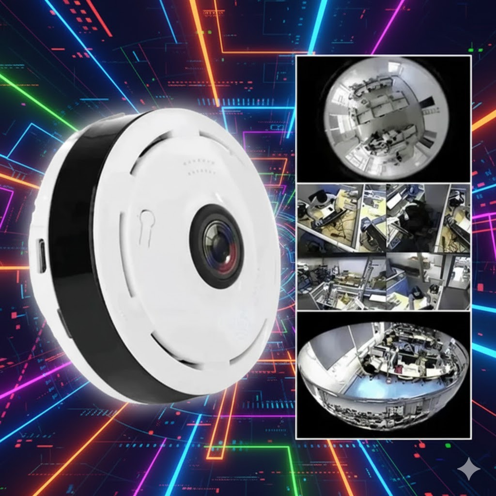 La Cámara de Seguridad Panorámica 360° es una solución moderna y eficiente diseñada para brindar cobertura visual completa en interiores. Su diseño compacto y discreto tipo domo permite instalarla fácilmente en techos o superficies elevadas, ofreciendo una visualización envolvente que reduce al mínimo los puntos ciegos. Gracias a su lente central gran angular y tecnología de visión panorámica, podrás monitorear todo el entorno desde un solo dispositivo.