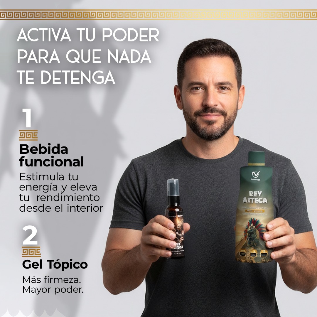 Bebida Funcional Rey Azteca: Energía y vitalidad desde el interior. Su exclusiva mezcla de ingredientes naturales apoya la resistencia, potencia la circulación y refuerza el rendimiento sexual, ayudándote a sentirte más confiado y seguro en cada momento.