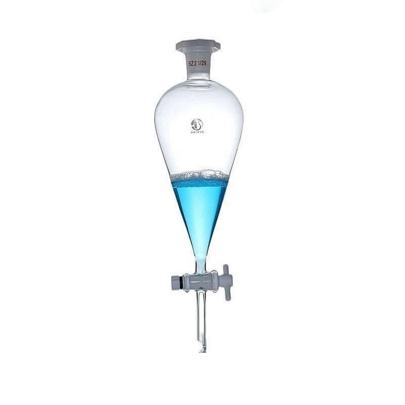 El embudo de decantación de 125 ml es un instrumento de laboratorio esencial diseñado para separar líquidos inmiscibles con diferentes densidades. Su forma cónica con cuello estrecho y llave de paso permite controlar la separación de manera precisa. Está fabricado en vidrio de borosilicato 3.3, que ofrece una excelente resistencia química y térmica, además de cumplir con las normas ISO 4800 y ASTM E911. La llave de paso de PTFE (teflón) es resistente a productos químicos y evita el atascamiento. El tapón esmerilado asegura un cierre hermético, evitando fugas y contaminaciones. Este embudo es ideal para realizar extracciones, lavados y separaciones de fases en análisis químicos, farmacéuticos y alimentarios.