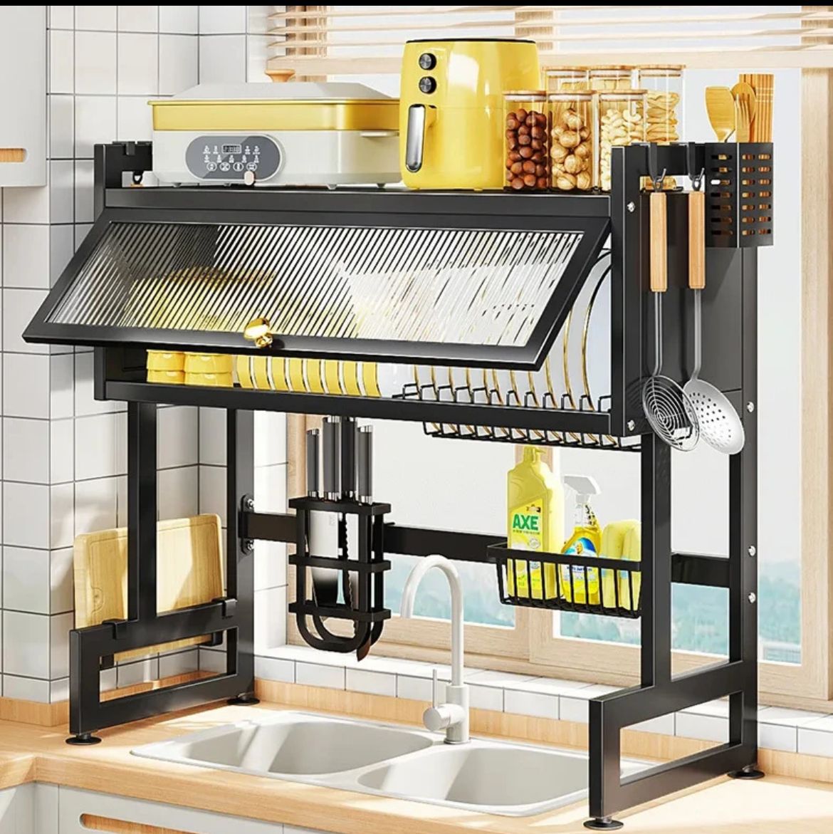Este práctico organizador metálico se instala sobre el fregadero, permitiéndote aprovechar al máximo el espacio vertical mientras mantienes tus utensilios siempre a la mano.