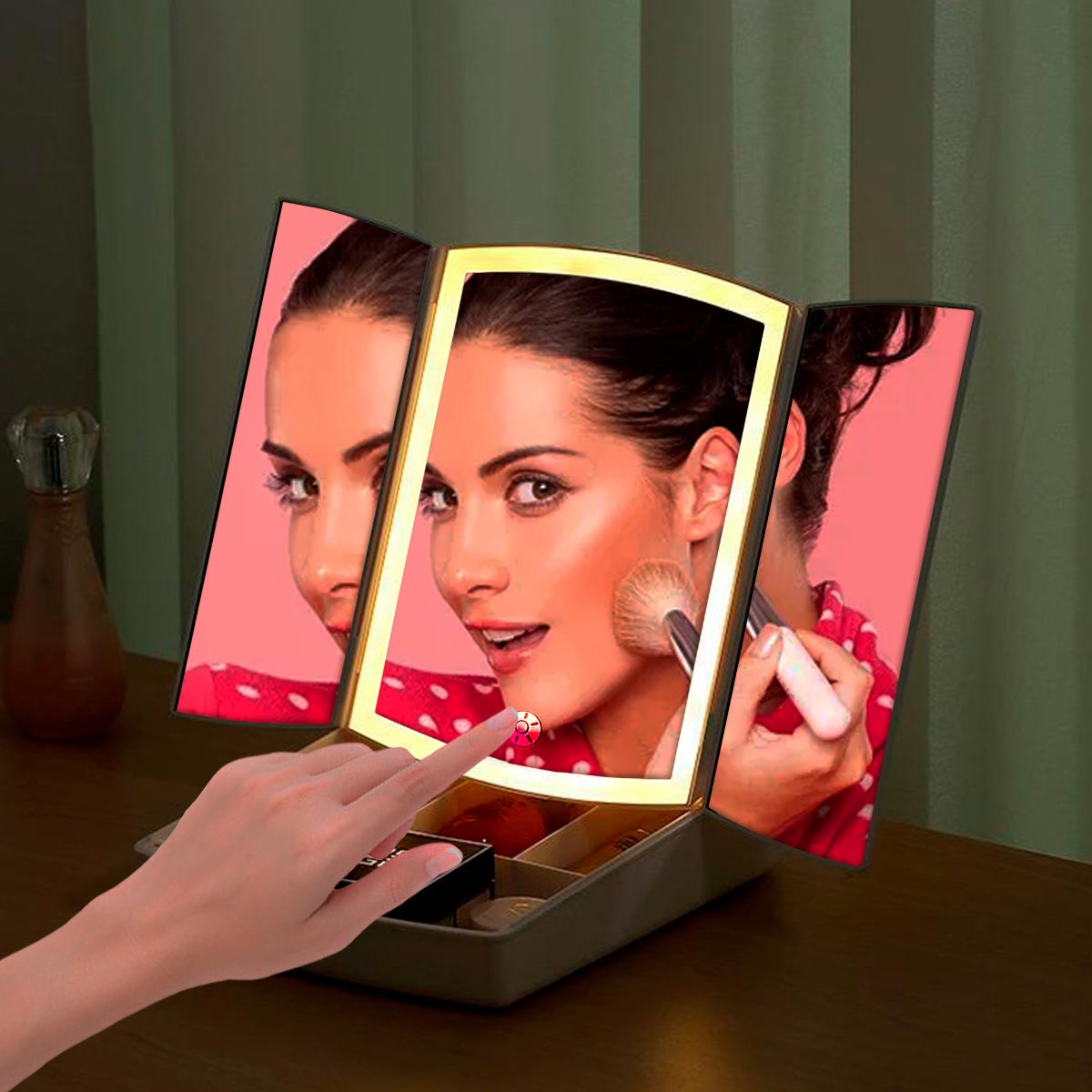 Tu espacio de maquillaje ordenado, bien iluminado y siempre listo, estés en casa o de viaje.