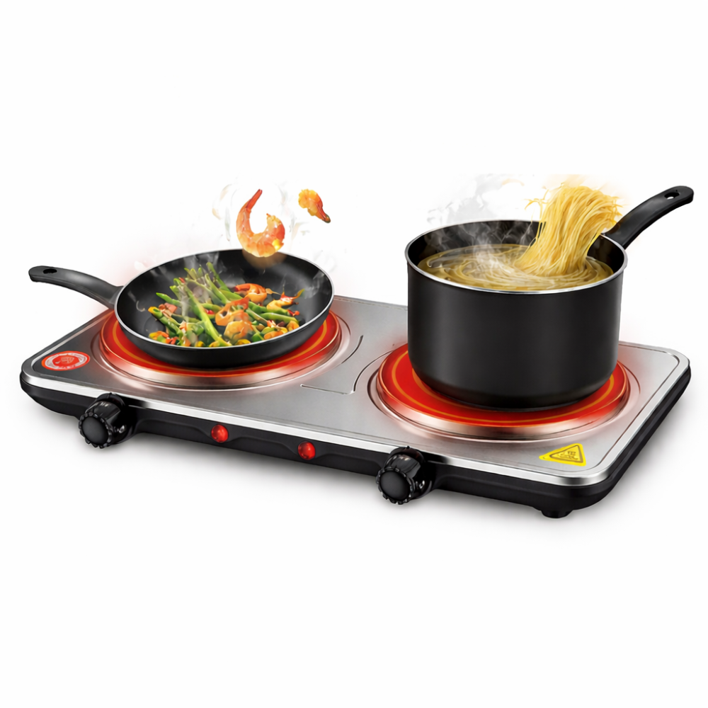 La estufa eléctrica doble Sokany SK-5102 es una solución práctica, compacta y eficiente para cocinar en el hogar, oficinas, apartamentos, campamentos o espacios donde no se dispone de cocina a gas. Su diseño portátil permite ubicarla fácilmente sobre cualquier superficie estable, ofreciendo dos placas de calentamiento independientes para preparar múltiples alimentos al mismo tiempo.
