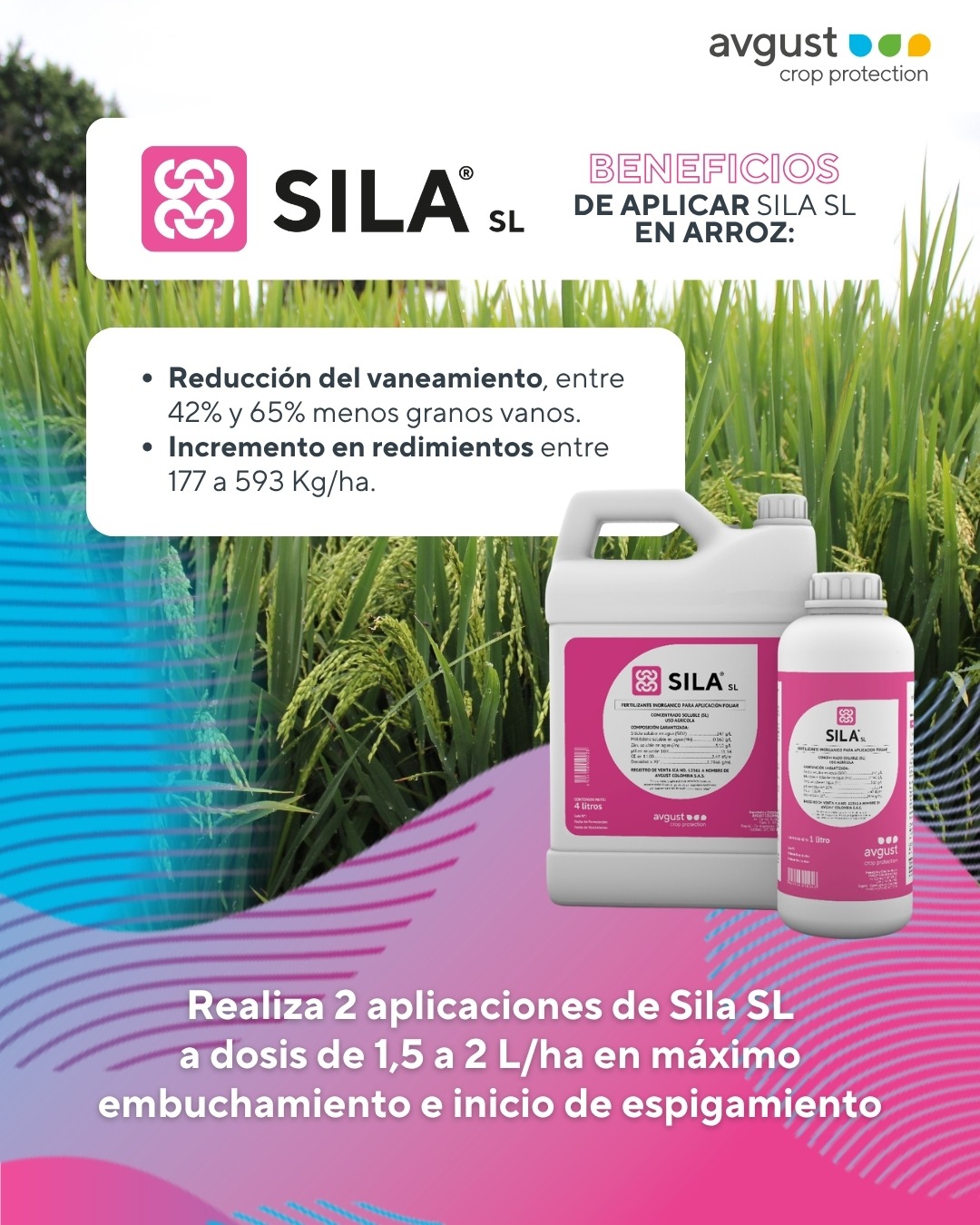 SILA® SL, nutriente, bioestimulante y protector foliar con alto contenido de Silicio soluble estabilizado, enriquecido con Zinc y Molibdeno que inducen a la planta a una mayor tolerancia al estrés abiótico y biótico, silicificando las paredes celulares y estimulando una mayor concentración de clorofila, mejorando la fotosíntesis y los rendimientos.