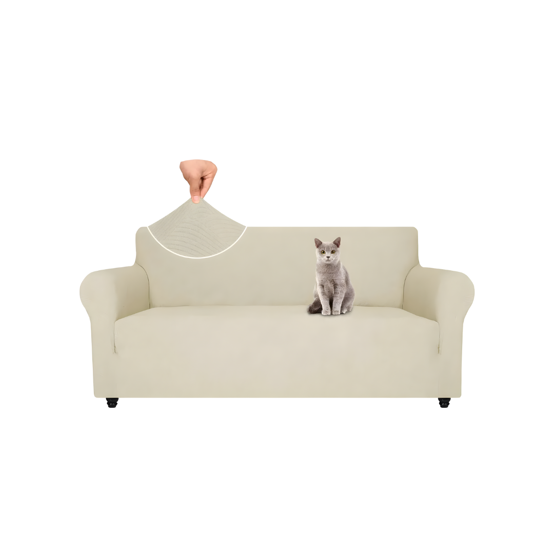 Protector de sofá elástico ajustable diseñado para cubrir muebles de tres puestos dentro de un rango amplio de dimensiones. Su tejido flexible permite que se adapte de manera uniforme a sofás con largo entre 180 cm y 231 cm, manteniéndose firme durante el uso diario. La estructura elástica envuelve el mueble por completo, facilitando tanto la instalación como la remoción y ofreciendo una solución práctica para mantener la limpieza del hogar.