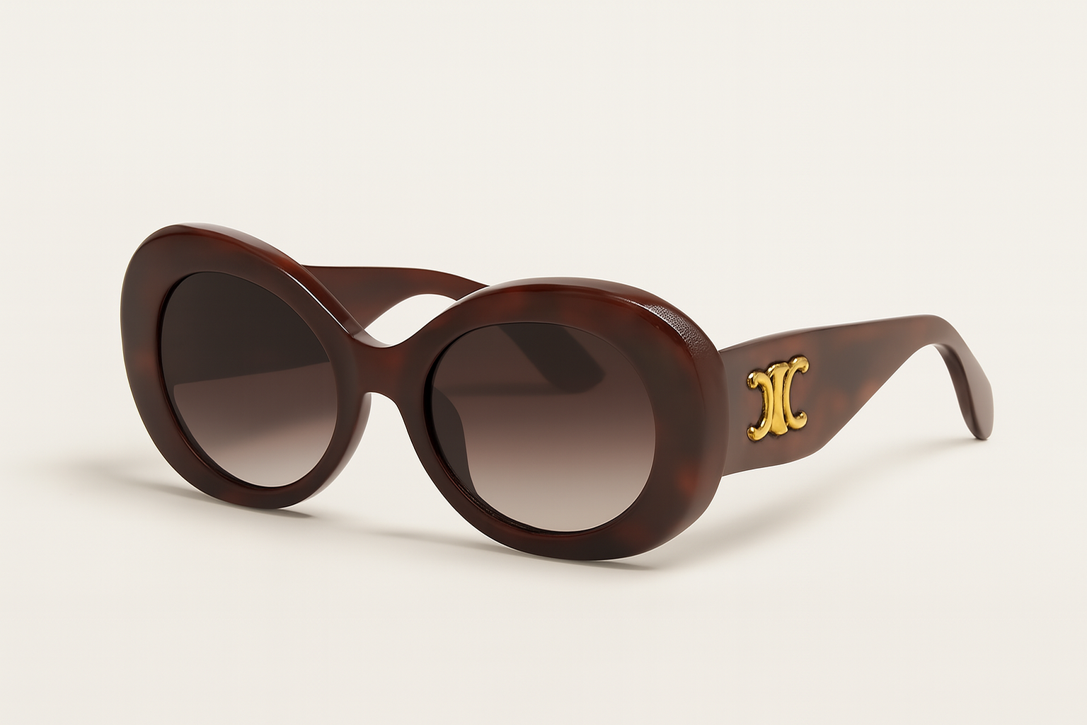 Estas gafas de sol en tono café oscuro combinan el estilo retro con un acabado moderno y sofisticado. Su marco grueso y curvo, junto con los lentes degradados y el emblema dorado en las patillas, las convierten en un accesorio de lujo accesible, ideal para elevar cualquier look urbano, casual o elegante.