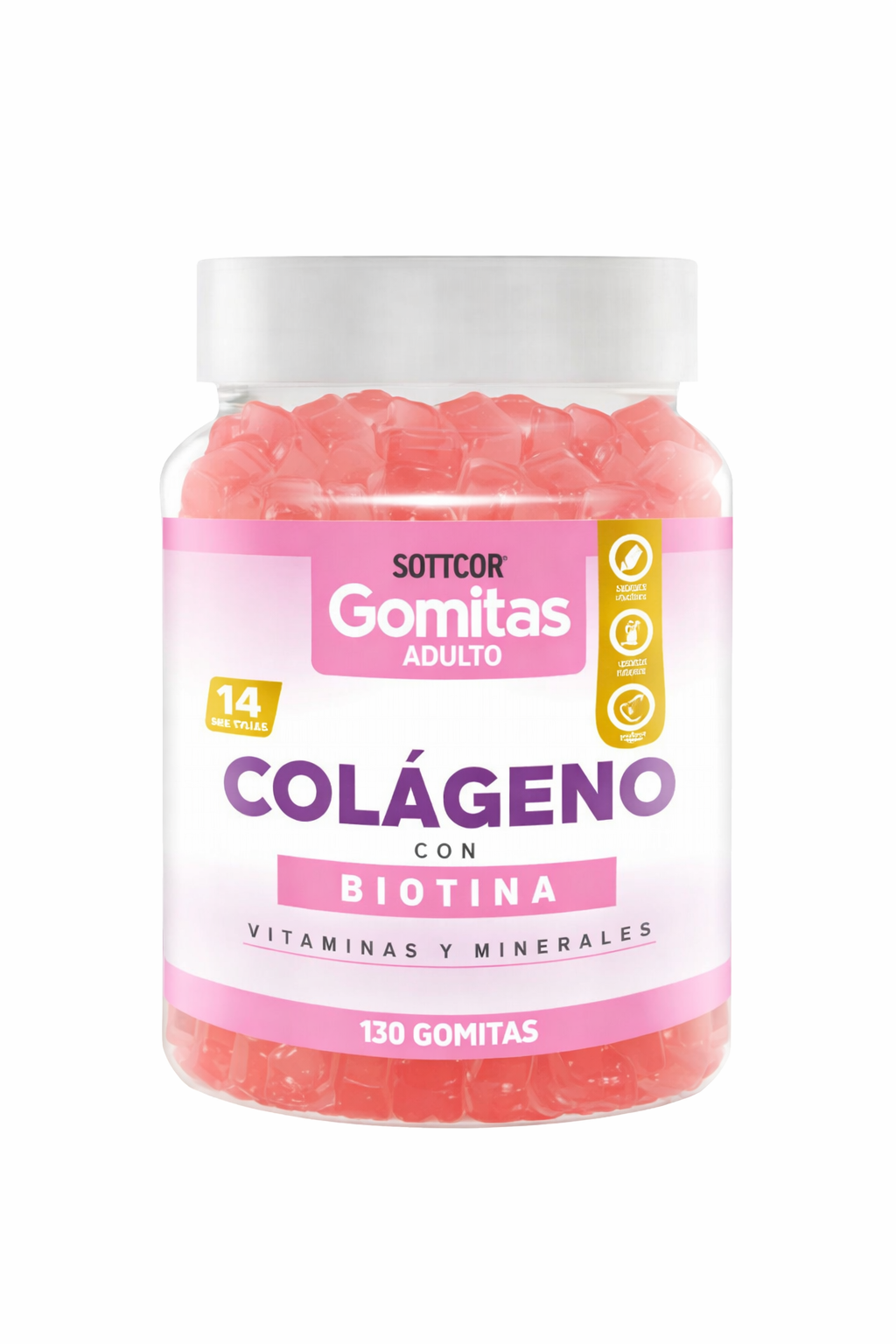Descubre las Gomitas de Colágeno con Biotina de SOTTCOR, un suplemento nutricional pensado para quienes desean apoyar el cuidado de su piel, cabello y bienestar general de una forma práctica y deliciosa. Cada frasco contiene 130 gomitas, formuladas con ingredientes seleccionados que ayudan a complementar la alimentación diaria.