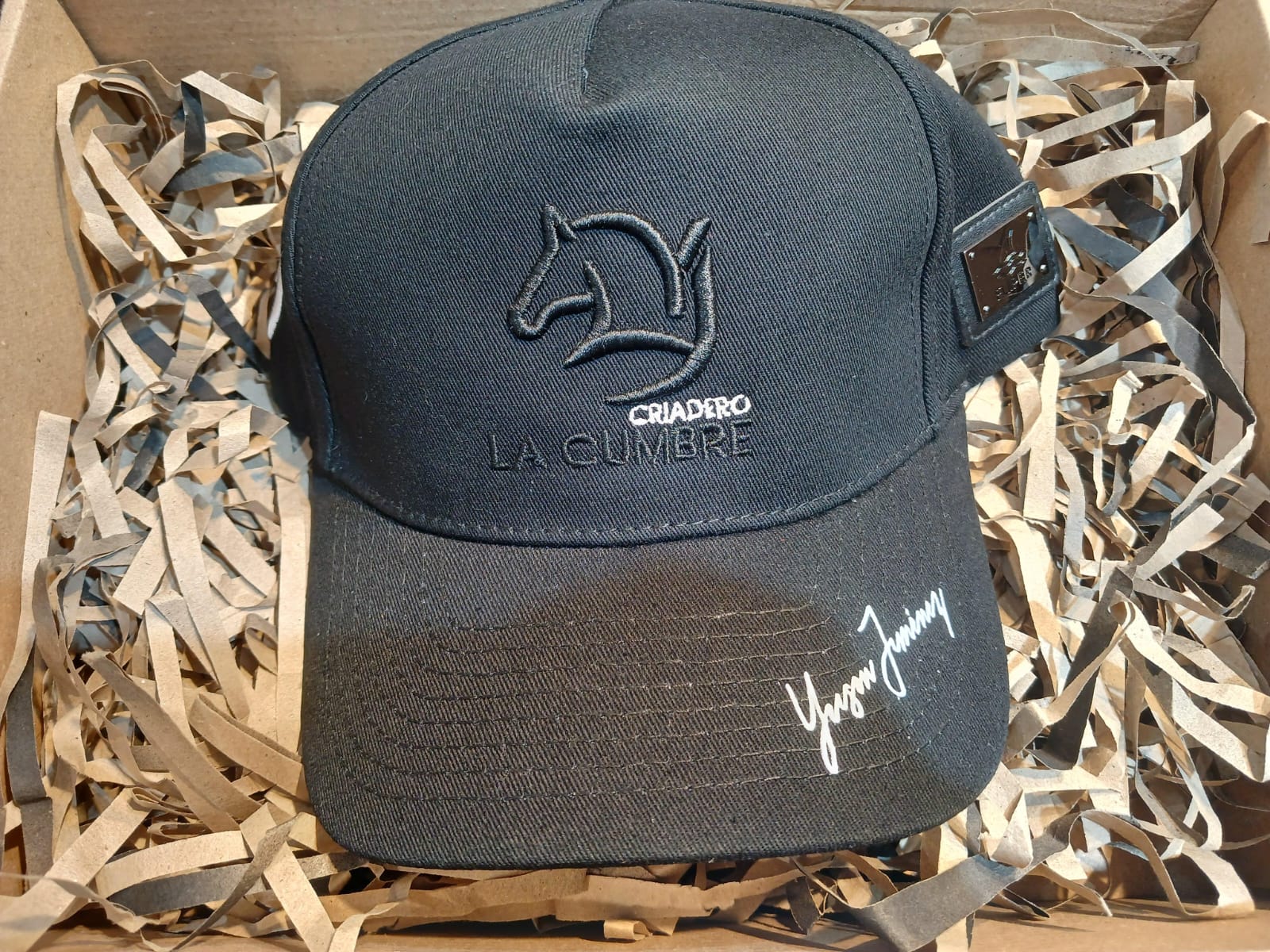 La gorra que se muestra en la imagen es mercancía oficial del "Criadero La Cumbre", el reconocido criadero de caballos de paso fino propiedad del cantante colombiano de música popular Yeison Jiménez. La firma bordada en la visera es la de Yeison Jiménez.