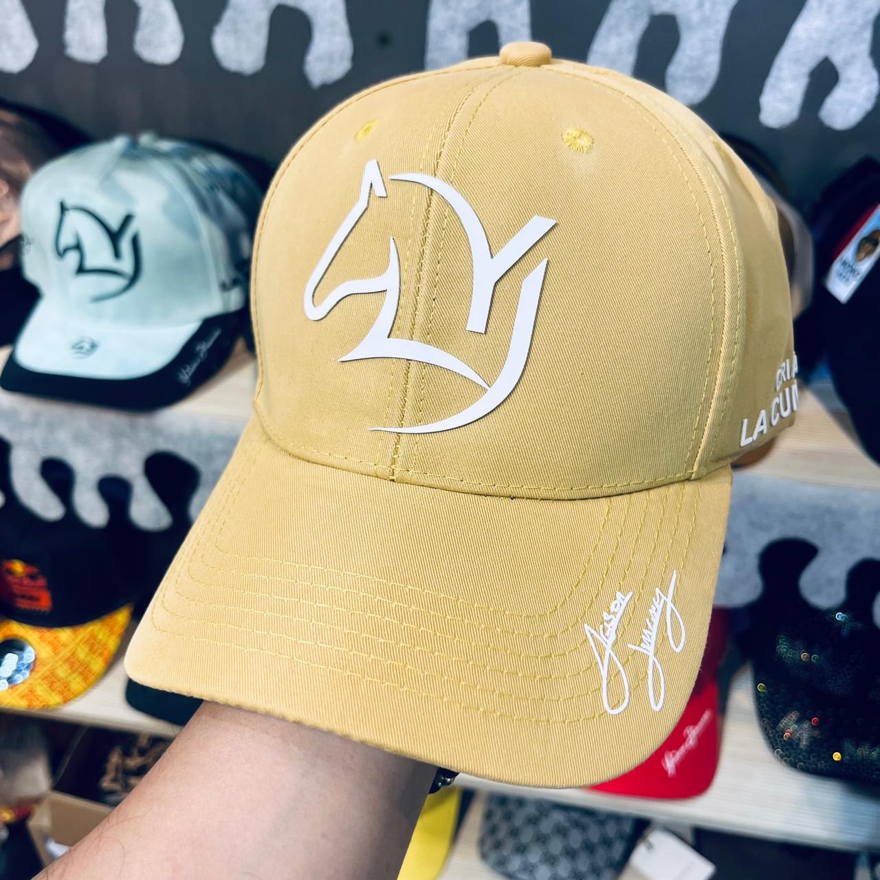 La gorra que se muestra en la imagen es mercancía oficial del "Criadero La Cumbre", el reconocido criadero de caballos de paso fino propiedad del cantante colombiano de música popular Yeison Jiménez. La firma bordada en la visera es la de Yeison Jiménez.