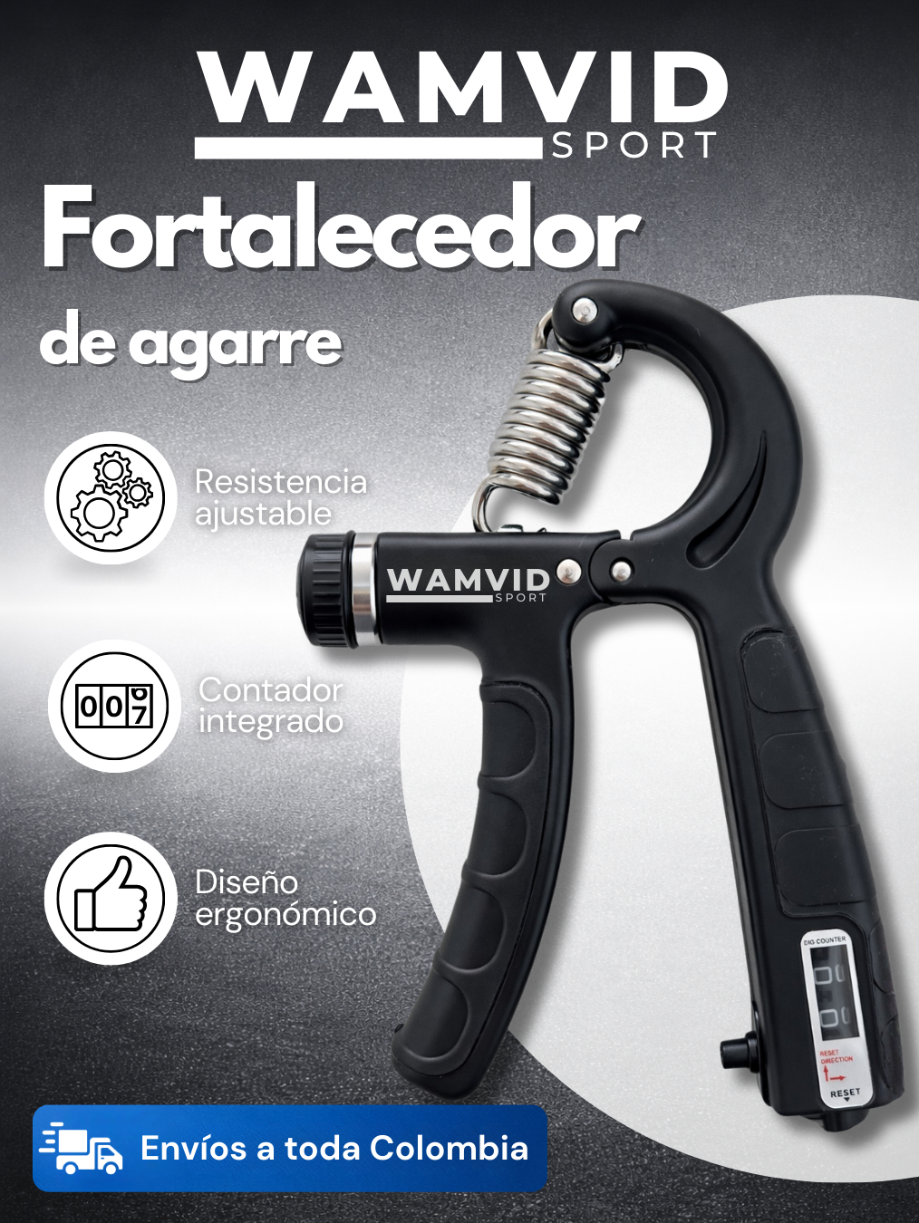 El Hand Grip con Contador es una herramienta diseñada para fortalecer la fuerza de agarre, manos, dedos y antebrazos, ideal para entrenamiento deportivo, rehabilitación o mejora del rendimiento en diferentes disciplinas.