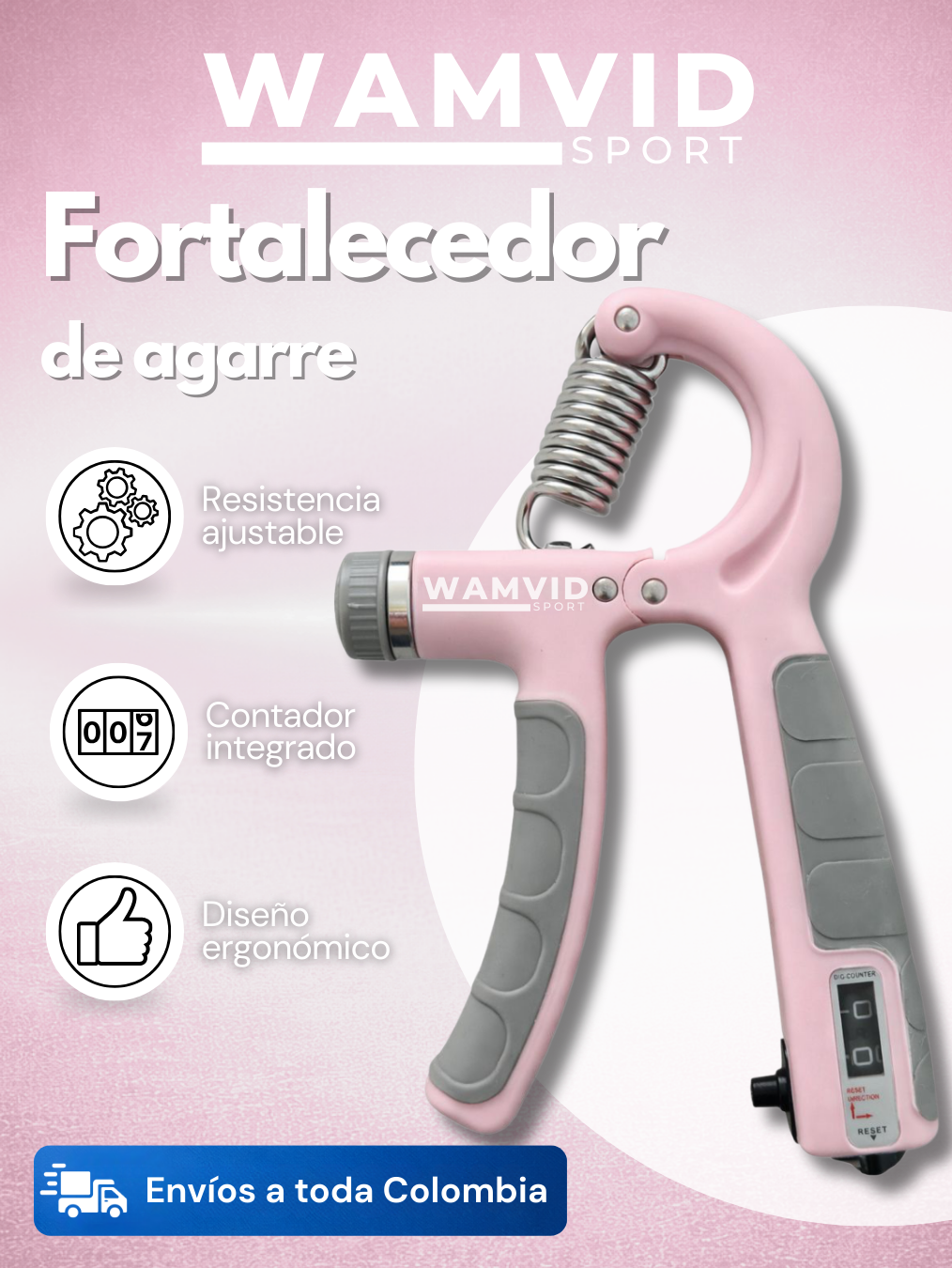HAND GRIP Ejercitador Mano Contador Rosa