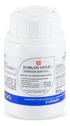 Es un herbicida selectivo al cultivo de maíz post-emergente sistémico para el control de malezas gramíneas y de hoja ancha. Es absorbido por las hojas y raíces de la planta, inhibiendo la enzima acetolactato sintasa. DUBLON GOLD® WG debe aplicarse desde la tercera hasta la sexta hoja verdadera del maíz.
