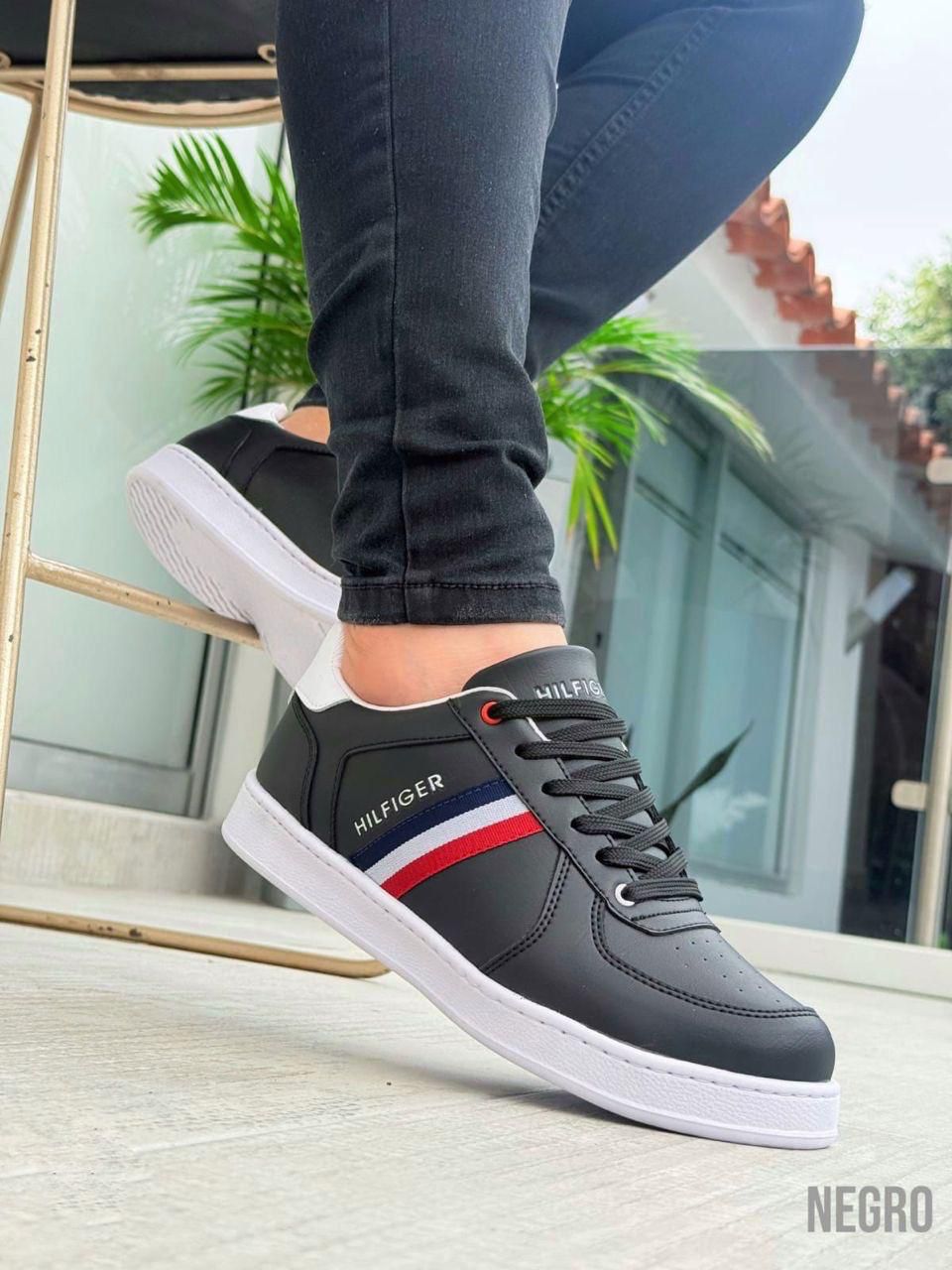 Diseño moderno y versátil, perfectos para elevar cualquier outfit. Con acabado en material sintético de alta calidad, suela blanca antideslizante y detalle lateral en franjas que aportan un toque deportivo y elegante.