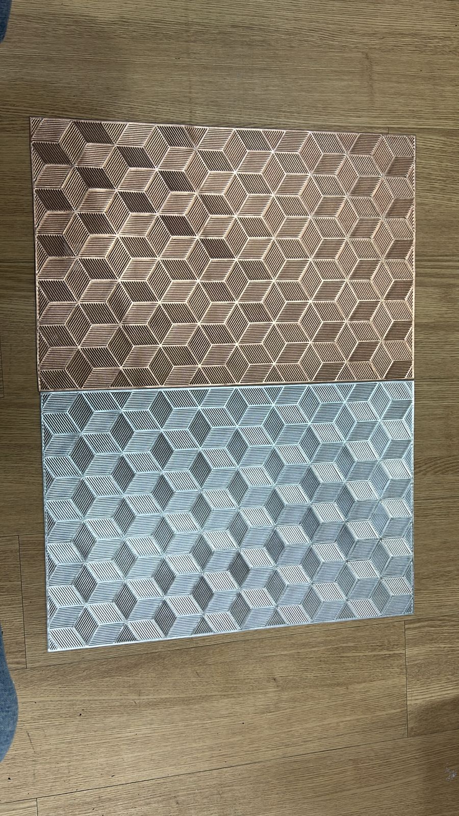 Este individual decorativo con diseño geométrico tipo cubos es ideal para darle un toque moderno y elegante a cualquier mesa. Su patrón tridimensional crea un efecto visual atractivo que combina fácilmente con diferentes estilos de decoración, desde lo contemporáneo hasta lo minimalista.