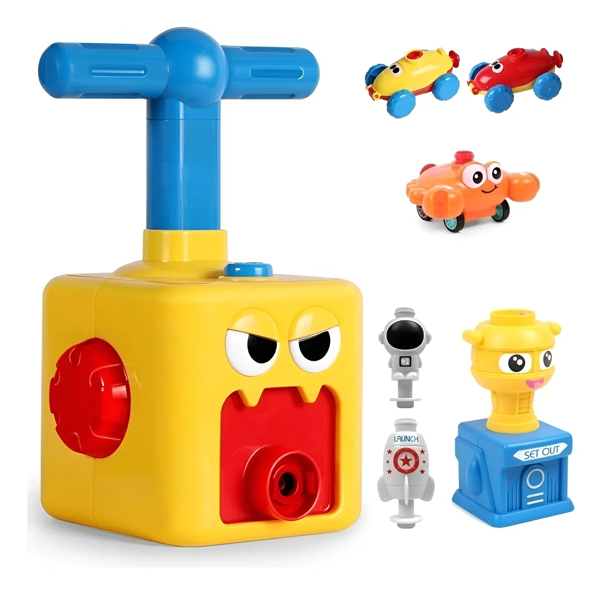 Balloon Zoom es un kit de juguetes impulsado por globos que les permite volar por los aires o correr, lo que te proporciona tiempo libre y diversión en familia. Describe Balloon Zoom incluye una bomba de aire, tres coches, un astronauta y un cohete, una plataforma de lanzamiento, 12 globos (colores aleatorios) que puedes lanzar al aire con un solo toque, con el impulso de los globos Haz que salten o corran. Simplemente inserta el globo, infla y suelta el juguete. Debido a que su funcionamiento es manual, no se necesitan baterías ni cargadores. Tu hijo disfrutará de horas de diversión corriendo con sus amigos y viendo despegar cohetes y astronautas