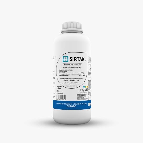 SIRTAK® SC es un insecticida de aplicación foliar, para el control de estados inmaduros de lepidópteros. Actúa por ingestión, principalmente, e interfiere el metabolismo de la síntesis de quitina impidiendo la muda, produciendo la muerte de larvas y pupas afectadas e impidiendo la eclosión de los huevos. Controla diversos insectos plaga del orden lepidóptera como el Gusano cogollero (Spodoptera frugiperda).
