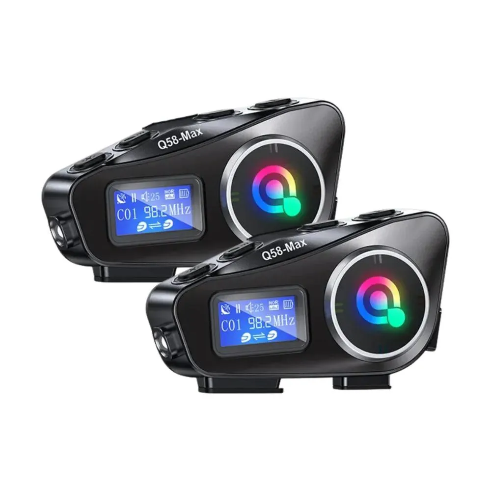 El Intercomunicador Bluetooth Q58-MAX es el compañero ideal para tus recorridos en moto. Diseñado para ofrecer comunicación clara, entretenimiento y seguridad, combina la última tecnología de conectividad con una calidad de sonido envolvente.