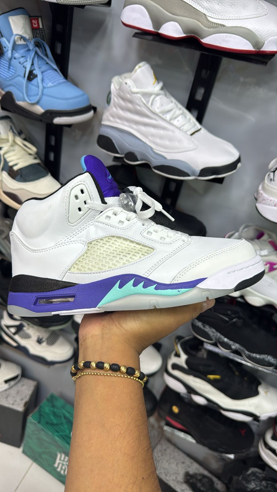 Jordan retro 5 blanca suela azul