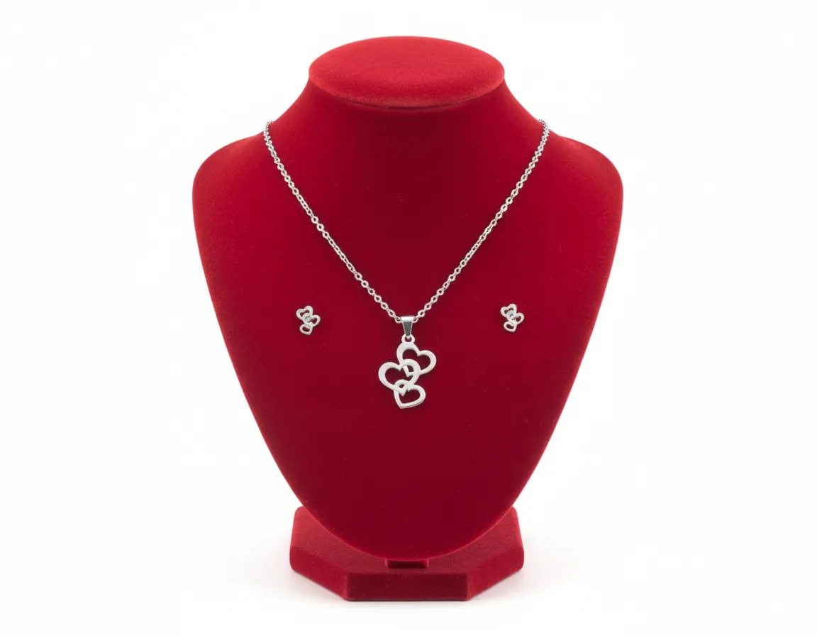 Juego de Collar y Aretes Diseño Corazón
