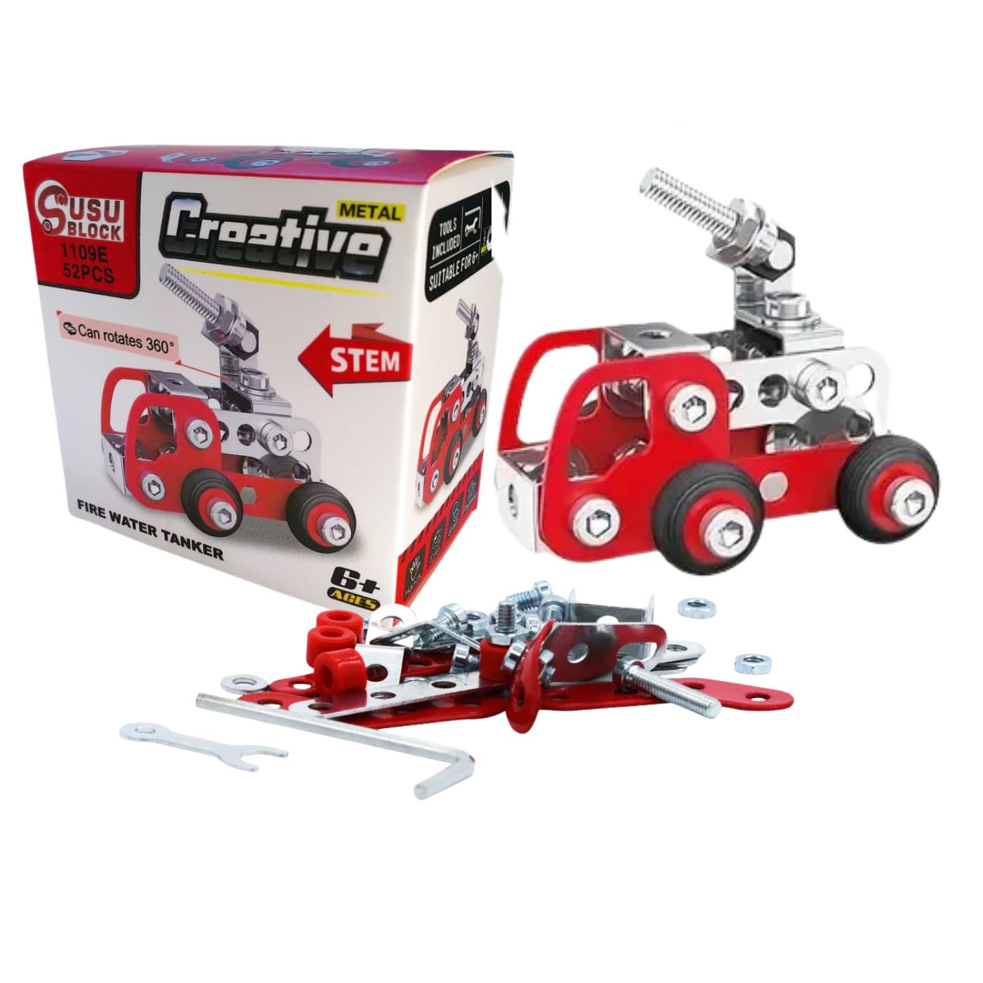 Cada modelo incluye tornillos, tuercas, ruedas y herramientas para ensamblar paso a paso.
