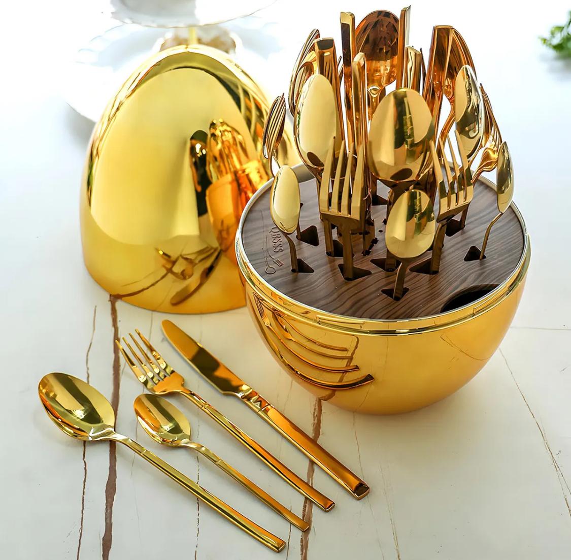 🍽️ Juego de Cubiertos 24 Piezas en Acero Inoxidable Gold Estuche Huevo Dorado o Plateado