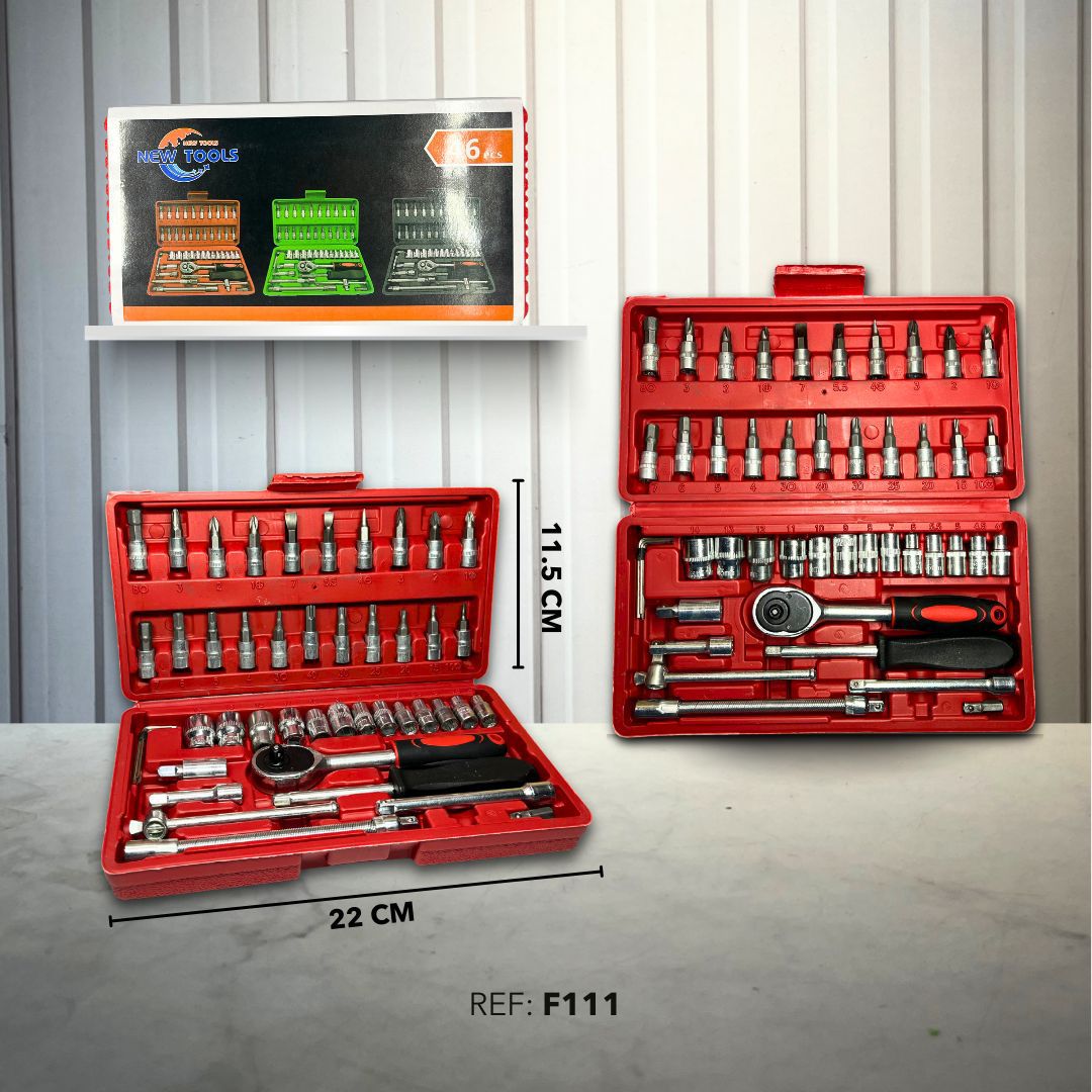 El Juego de Raches x 46 Piezas F111 es ideal para talleres, bricolaje y mantenimientos en casa o el trabajo.