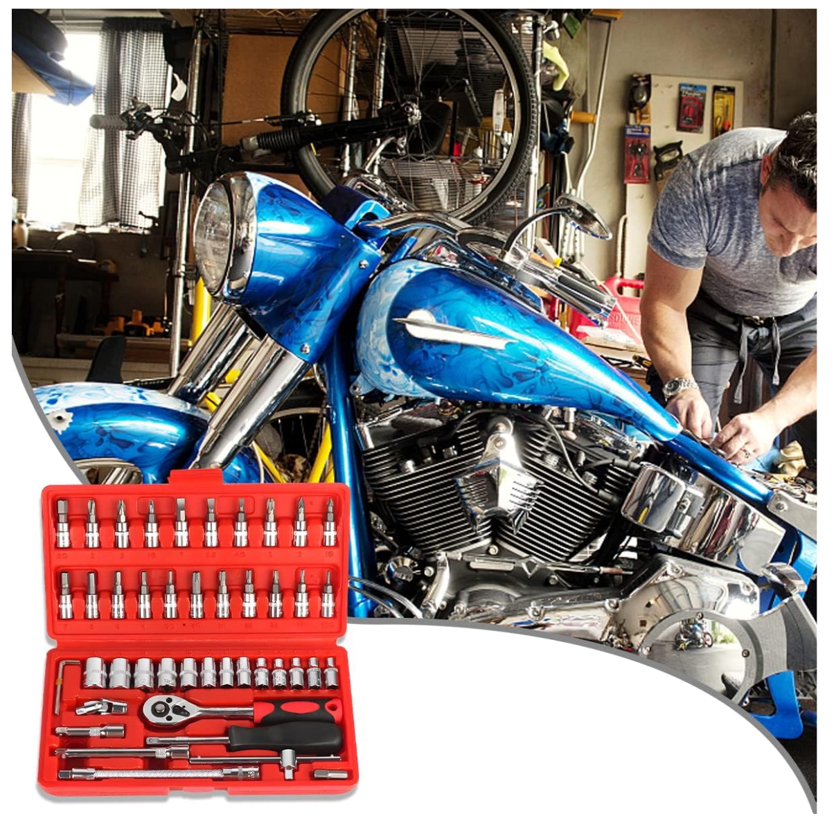 Juego de Llaves de Vaso 46 Piezas con Matraca 1/4” – Kit de Herramientas Profesional