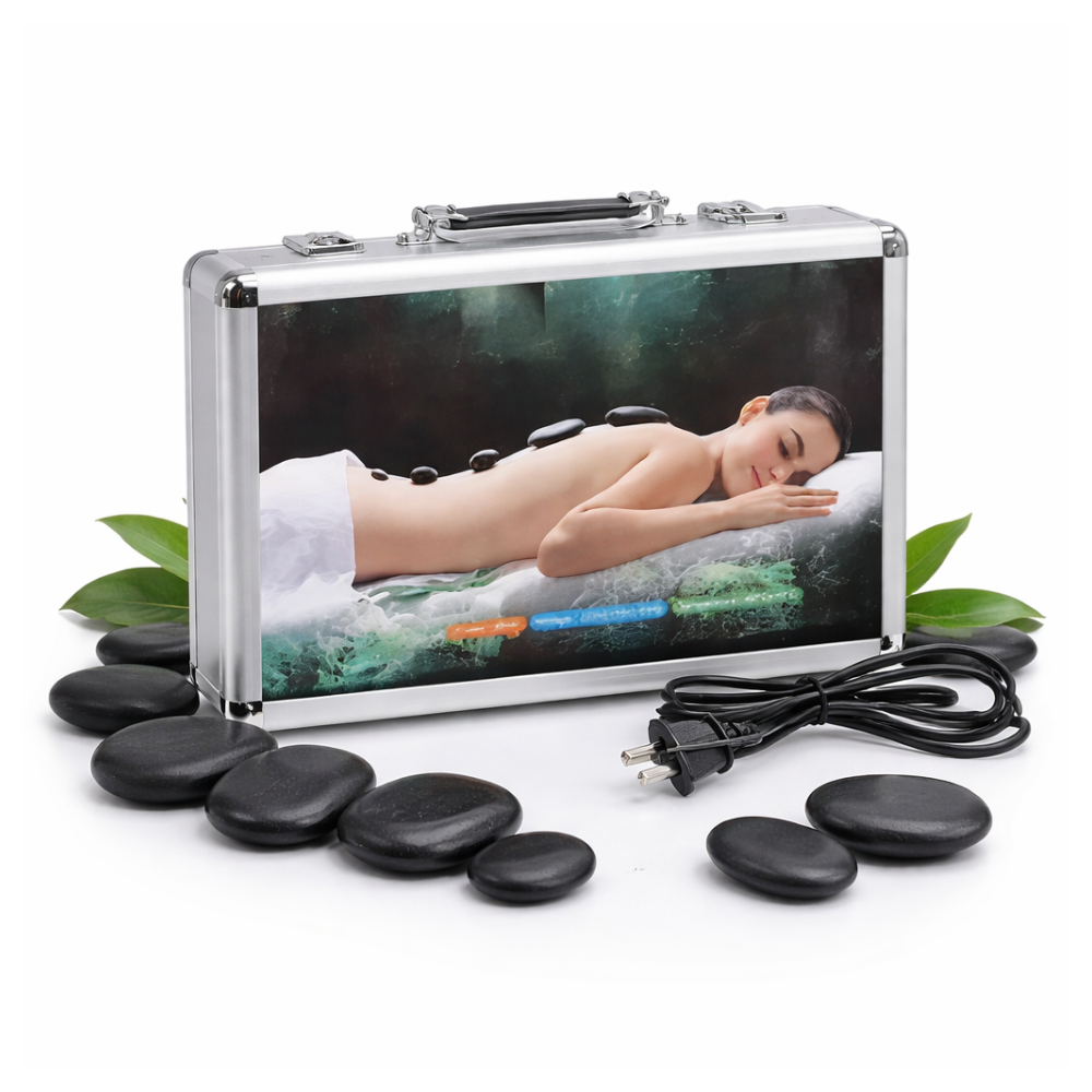 Características Piedras volcánicas naturales de basalto Alta retención de calor para terapias prolongadas Superficie lisa y cómoda para el masaje Diferentes tamaños para distintas zonas del cuerpo Maletín resistente para almacenamiento y transporte Ideales para spa, estética y relajación corporal Fáciles de limpiar y reutilizar Uso profesional o personal