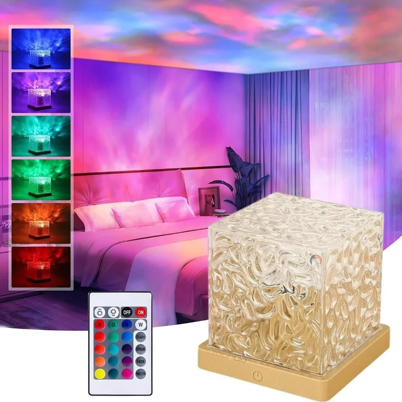 Lámpara de ambiente dinámica con efecto de olas y llamas 3D, ideal para crear espacios relajantes y sofisticados. Su pantalla interna giratoria proyecta ondas de agua y luces cálidas, transformando cualquier habitación en un entorno acogedor. Cuenta con 16 colores ajustables, brillo regulable y control remoto para personalizar fácilmente la iluminación. Su diseño compacto con base tipo madera y acabado elegante la convierte en un accesorio decorativo perfecto para dormitorios, salas de estar o espacios de descanso. Funciona con alimentación USB recargable, ofreciendo comodidad y portabilidad sin ocupar espacio. Con una vida útil de hasta 10.000 horas, es una lámpara duradera que combina estilo, practicidad y un ambiente único de luz y sombra.