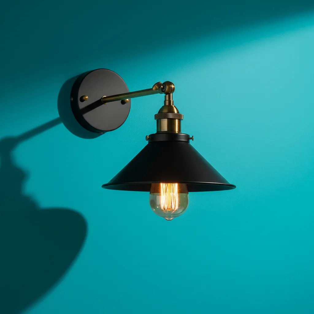 Lámpara de Pared Industrial Ajustable Negro y Dorado – Aplique Vintage Moderno para Interior y Exterior