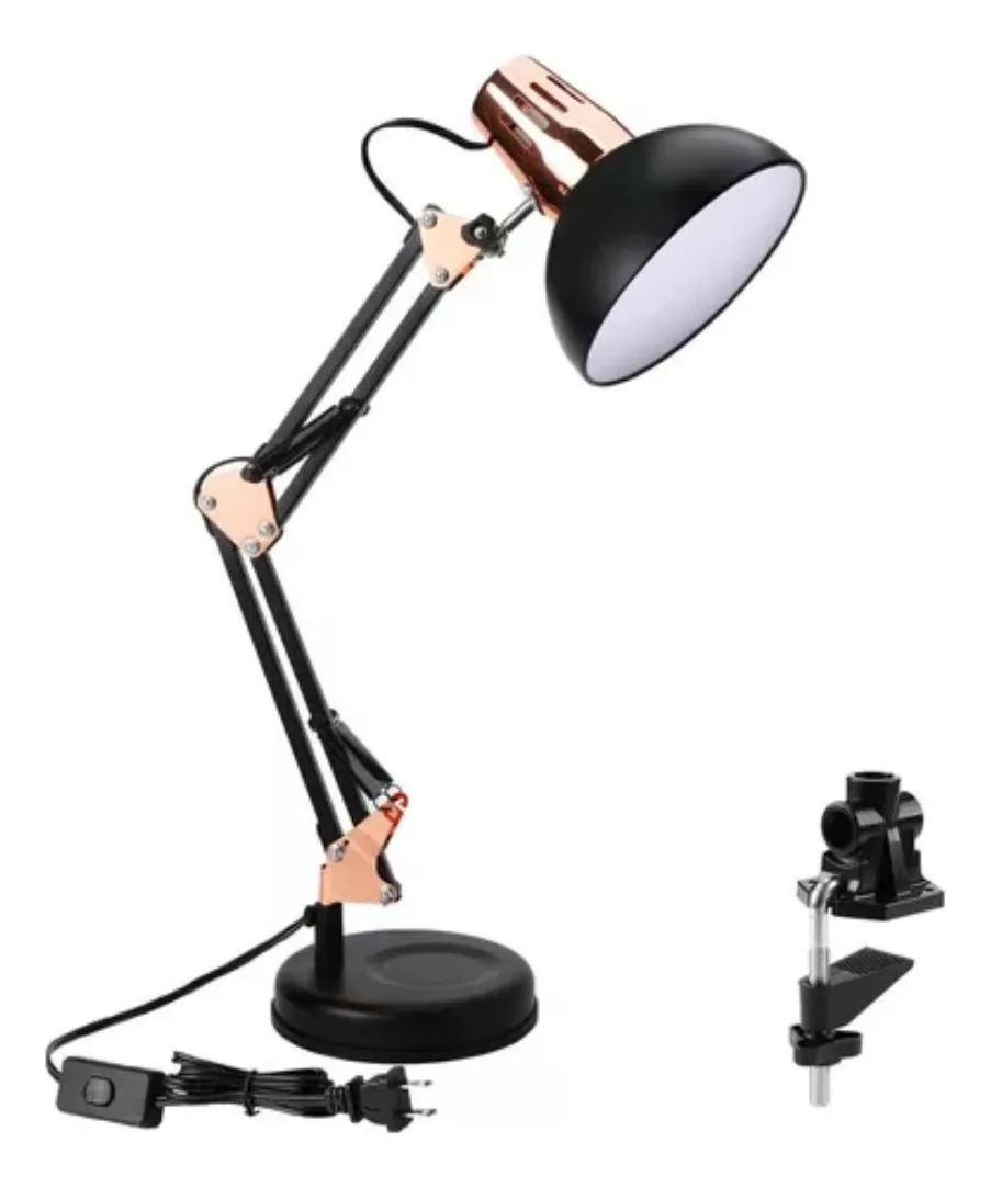 Ilumina tu espacio con estilo y funcionalidad. Esta elegante lámpara de escritorio con brazo articulado permite ajustar fácilmente la dirección de la luz para trabajar, estudiar o leer con mayor comodidad. Su diseño moderno en tonos negro, blanco y acabado metálico añade un toque sofisticado a cualquier escritorio, oficina o habitación.
