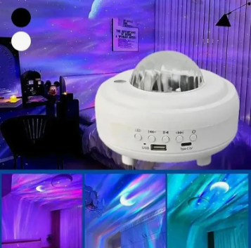 Características principales: Proyector LED de 8 Modos de Luz: Disfruta de una variedad de colores que transforman tu techo en un cielo estrellado, con luces que varían desde tonos cálidos hasta fríos, perfectos para cualquier ocasión.